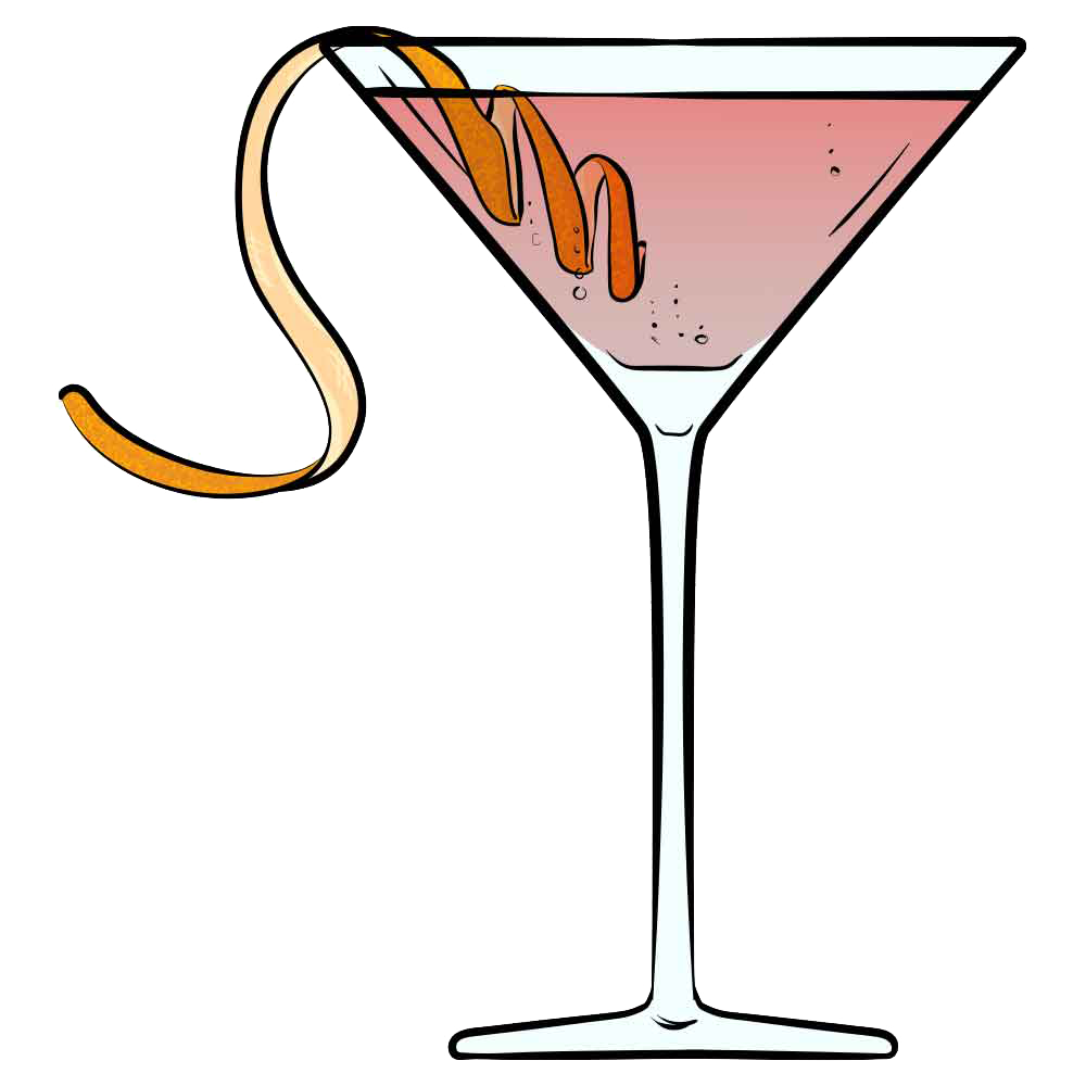 To make a flaming orange zest, squeeze the oil from a strip of orange zest, held skin downwards and over a flame above the glass. Rub the rim with the orange zest before dropping it into the glass.